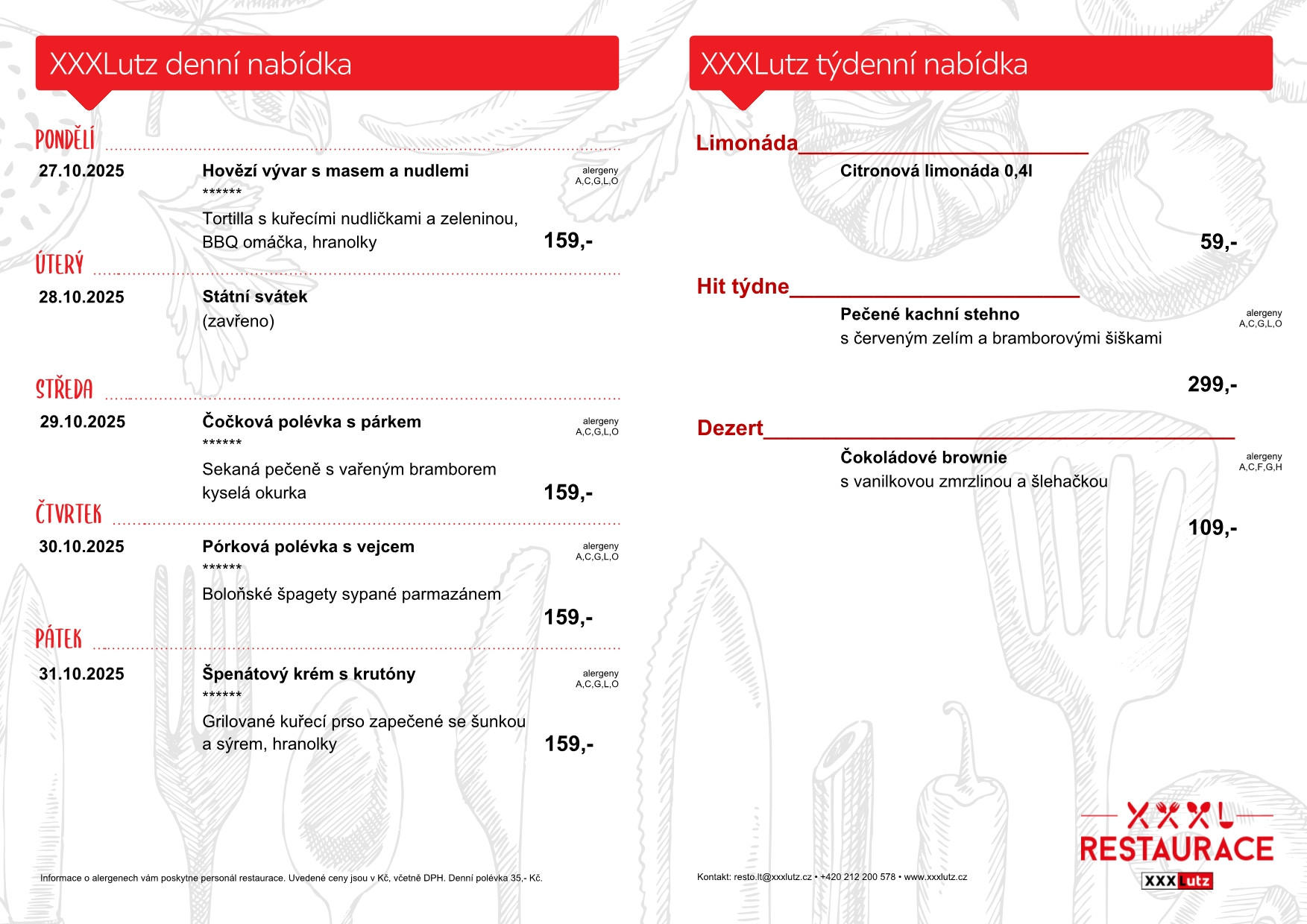 Jídelní lístek, ve kterém si vybere každý, skvělá kuchyně, rychlá a vstřícná obsluha, pravidelné akční nabídky, Wi-Fi i dětský koutek. To jsou jen některé důvody, proč si naši restauraci zamilujete. Objednejte si třeba náš luxusní XXXL řízek nebo lehký fitness salát, k tomu oblíbený nápoj a odpočiňte si v příjemném prostředí. XXXLutz restaurace najdete v těchto našich prodejnách: Praha Stodůlky a Černý Most, Čestlice, Modřice u Brna, Hradec Králové.