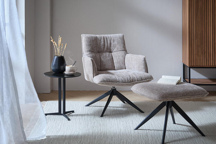 Náš tip: Jídelní židle potažené látkou mohou s dalším čalouněným nábytkem v místnosti (například se sedací soupravou) buď barevně ladit nebo naopak vytvořit barevný akcent, ale neměly by jeho barvu úplně ignorovat.