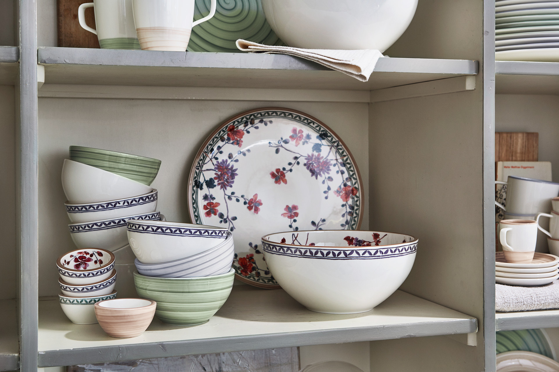 Kombinovaný servis má většinou 30 až 66 částí a skládá se v závislosti na výrobci z jídelních a hlubokých talířů, dezertních talířků, šálků na kávu a podšálků – a to po 6 kusech. Obsáhlejší sady doplňují základní nabídku o misky na müsli, hrnky na kávu, stojánky na vajíčka a další díly.