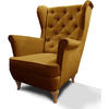 Velkou výhodou je možnost volby barvy nožek – wenge nebo buk, díky čemuž lze křeslo snadno sladit s interiérem. Výrazné opěradlo a područky spolu s masivními dřevěnými nohami dodávají modelu jedinečný charakter a univerzální styl.