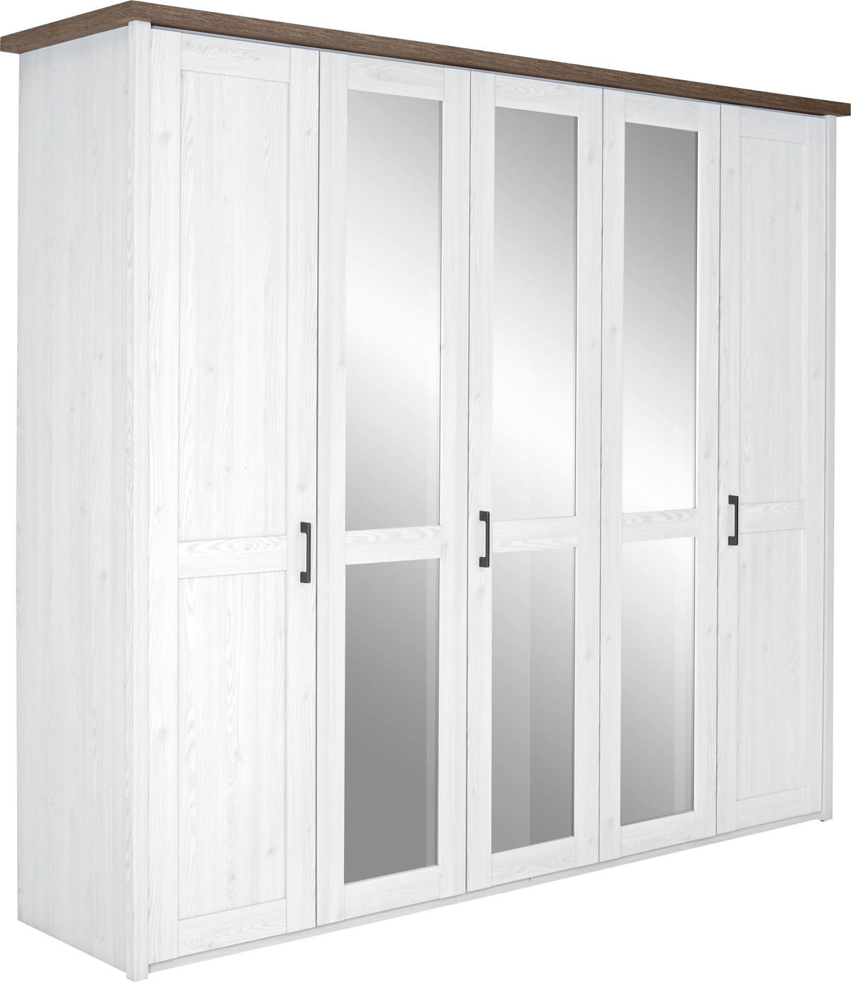Tato šatní skříň se stane skutečným zlatým hřebem pro všechny milovníky módy. Do prostoru za 5 dveřmi hravě pověsíte své halenky a šaty, uspořádáte trička a svetry podle potřeby: už se Vám nic nepomačká. Díky velkorysému úložnému prostoru se skříň optimálně hodí i pro 2 osoby. Standardně se skříň dodává se 6 vkládacími policemi a se 2 šatními tyčemi. Jako vyznavači módy oceníte 6 zrcadel na přední straně: každý den vyrazíte z domova maximálně šik. Opticky skříň nadchne rustikálním šarmem. Klasická bílá se snoubí s barvou lanýžového dubu vrchní desky. S těmito barvami v okamžiku vytvoříte příjemnou a přátelskou atmosféru ve Vaší ložnici. Tuto šatní skříň se zrcadlem si zamilujete!
