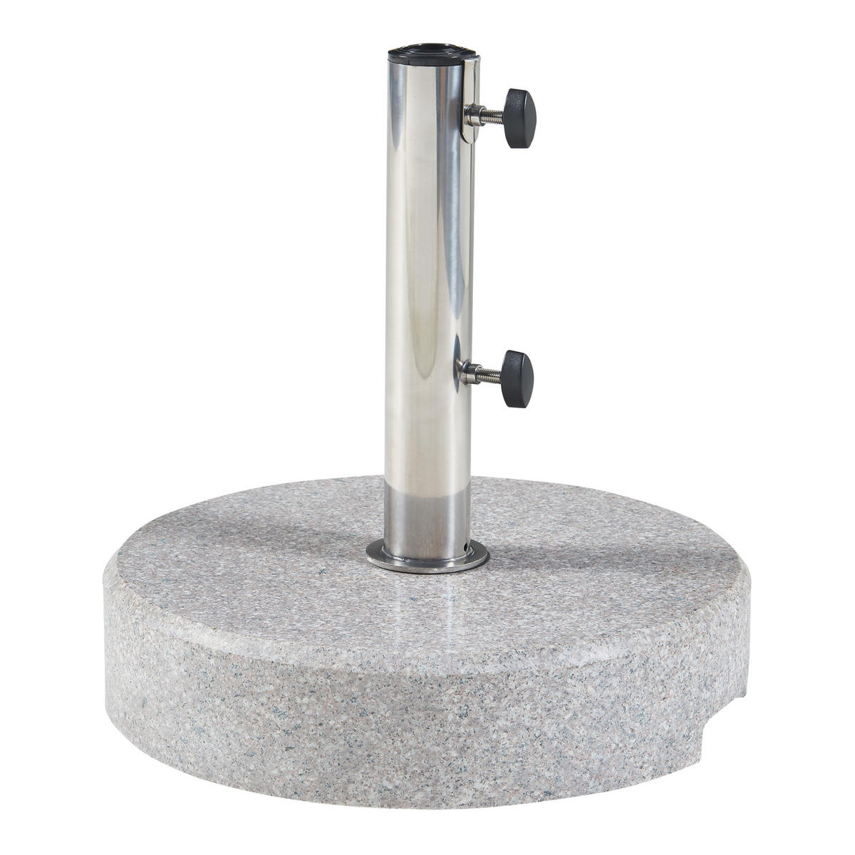 Pevný stojan na slunečník je odolný a odolný vůči povětrnostním vlivům. Jeho těžká žulová základna zaručuje bezpečné uchycení slunečníku a zajišťuje výjimečnou stabilitu i při silném větru. Tento stojan s trubkou z nerezové oceli je nejen odolný vůči povětrnostním vlivům, ale také stylovým doplňkem pro každý venkovní prostor. Dva praktické uzamykatelné šrouby usnadňují upevnění slunečníku bez použití dalších nástrojů. Šetrná spodní strana žulové desky zabraňuje poškrábání a poškození citlivých podlahových krytin. Kompaktní tvar podstavce umožňuje úsporné skladování v zimních měsících. Obsah dodávky zahrnuje tři adaptérové kroužky, které jsou vhodné pro tyče slunečníků o průměru 25, 32 a 38 mm. Bez těchto adaptérů může stojan bezpečně držet i tyče deštníků o průměru až 49 mm. Stačí vybrat správný adaptér pro váš slunečník, vložit jej a zajistit šroubem.Díky praktickým zapuštěným úchytům se stojan snadno přepravuje a lze jej snadno a rychle přemístit. Díky přirozené struktuře žuly je každý stojan jedinečný. Jemné barevné provedení dokonale zapadne do vaší zahrady, terasy nebo jiného prostředí a ladí s širokou škálou barev slunečníků. Významné vlastnosti výrobku: