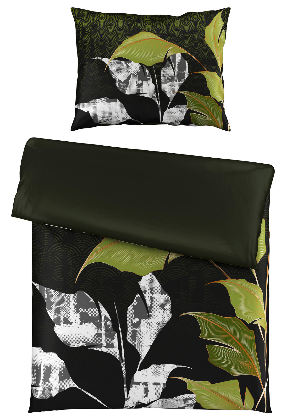 OBOUSTRANNÉ POVLEČENÍ, satén, zelená, černá, 140/200 cm - černá/zelená, Konvenční, textil (140/200cm) - Esposa