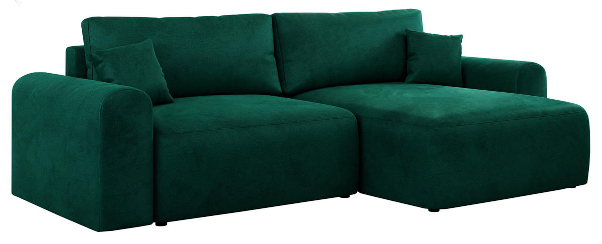 Sedák a opěrky jsou vyplněny vysoce kvalitní polyuretanovou pěnou a doplněny vlnitými pružinami, což zaručuje maximální pohodlí při sezení a dlouhodobou tvarovou stabilitu. Hladký design sedáku a polštářů záměrně nepoužívá žádné ozdoby, což pohovce ve tvaru L dodává nadčasový vzhled. Elegantní zaoblené područky podtrhují stylový rohový gauč s úložným prostorem.