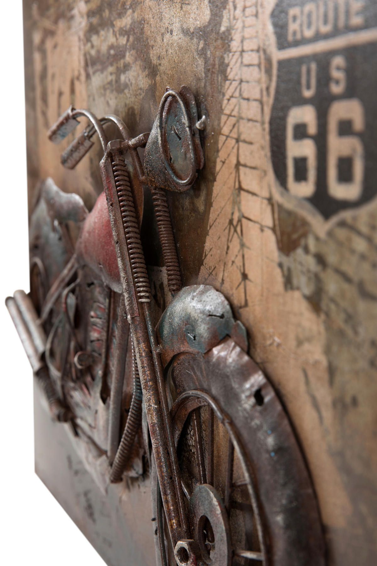 Tento obraz vdechne Vašemu interiéru nádech starých dobrých časů! Bytový doplněk s rozměry cca 60 x 40 cm je vyroben ze železa. Ručně malovaná historická motorka poslouží jako vkusná dekorace do obývacího pokoje. Díky rafinovanému 3D efektu působí velmi autenticky. Kovový obraz: jedinečný doplněk pro každého milovníka motocyklů!