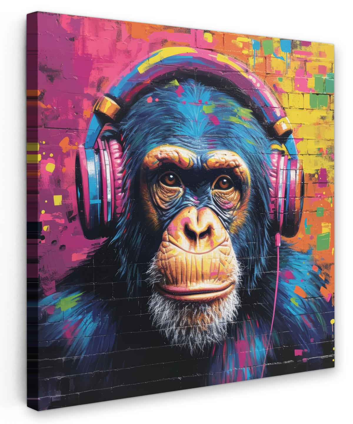 MuchoWow OBRAZ NA PLÁTNĚ Graffiti - Šimpanz - Street art - Sluchátka - Opice 20x20 cm