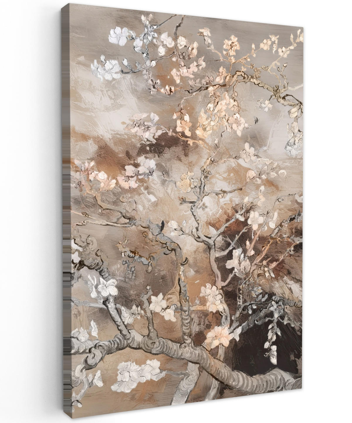 Obraz "Květ mandloně" od starého mistra Vincenta van Gogha získal nový vzhled díky béžovým barvám.