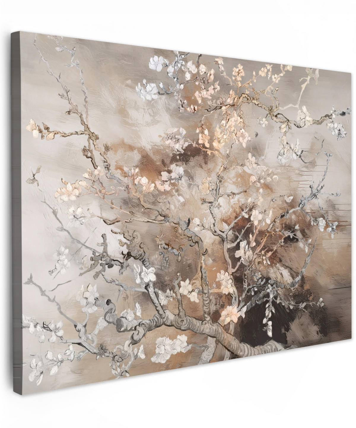 Obraz "Květ mandloně" od starého mistra Vincenta van Gogha získal nový vzhled díky béžovým barvám.