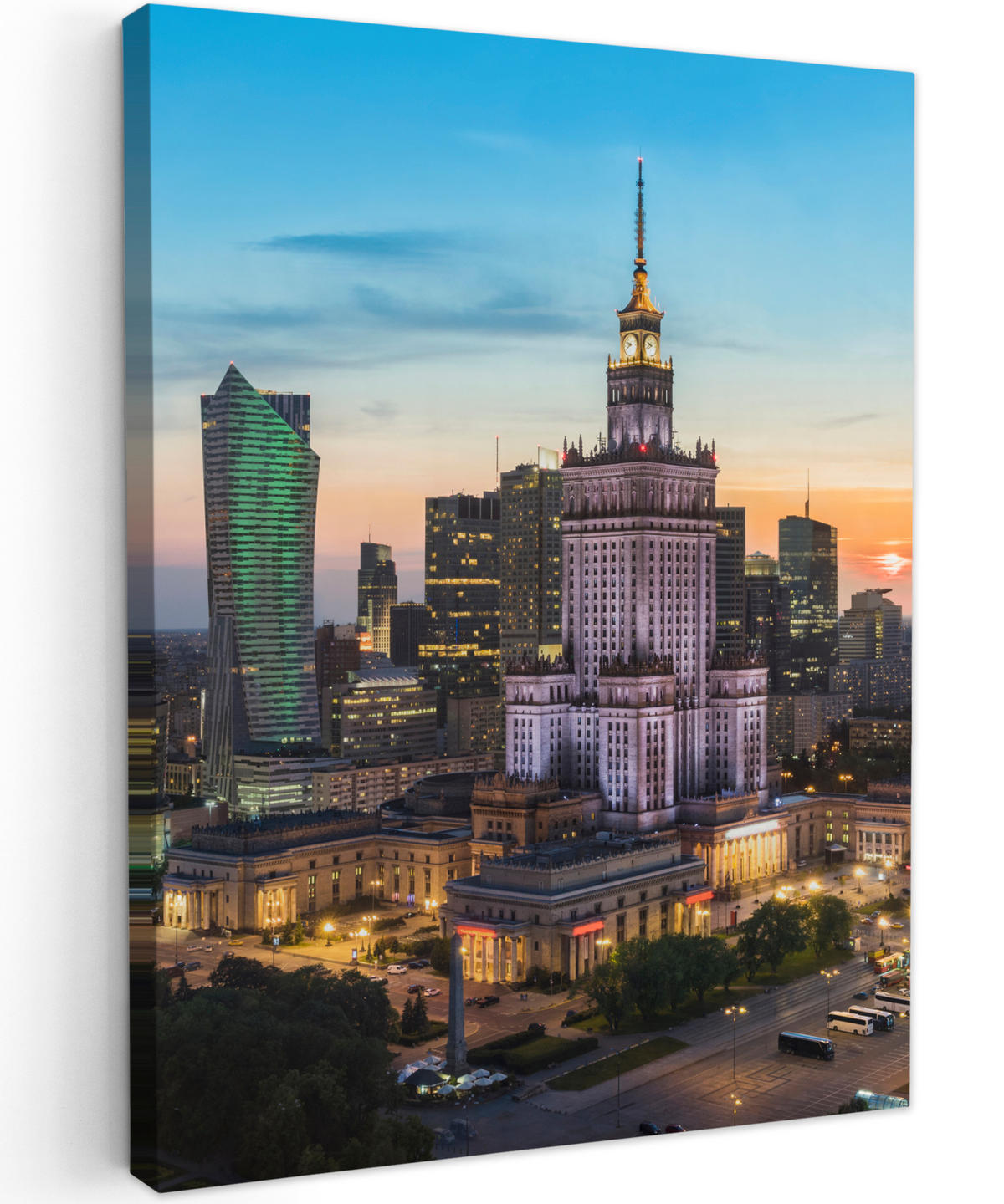 Západ slunce nad panoramatem Varšavy.
