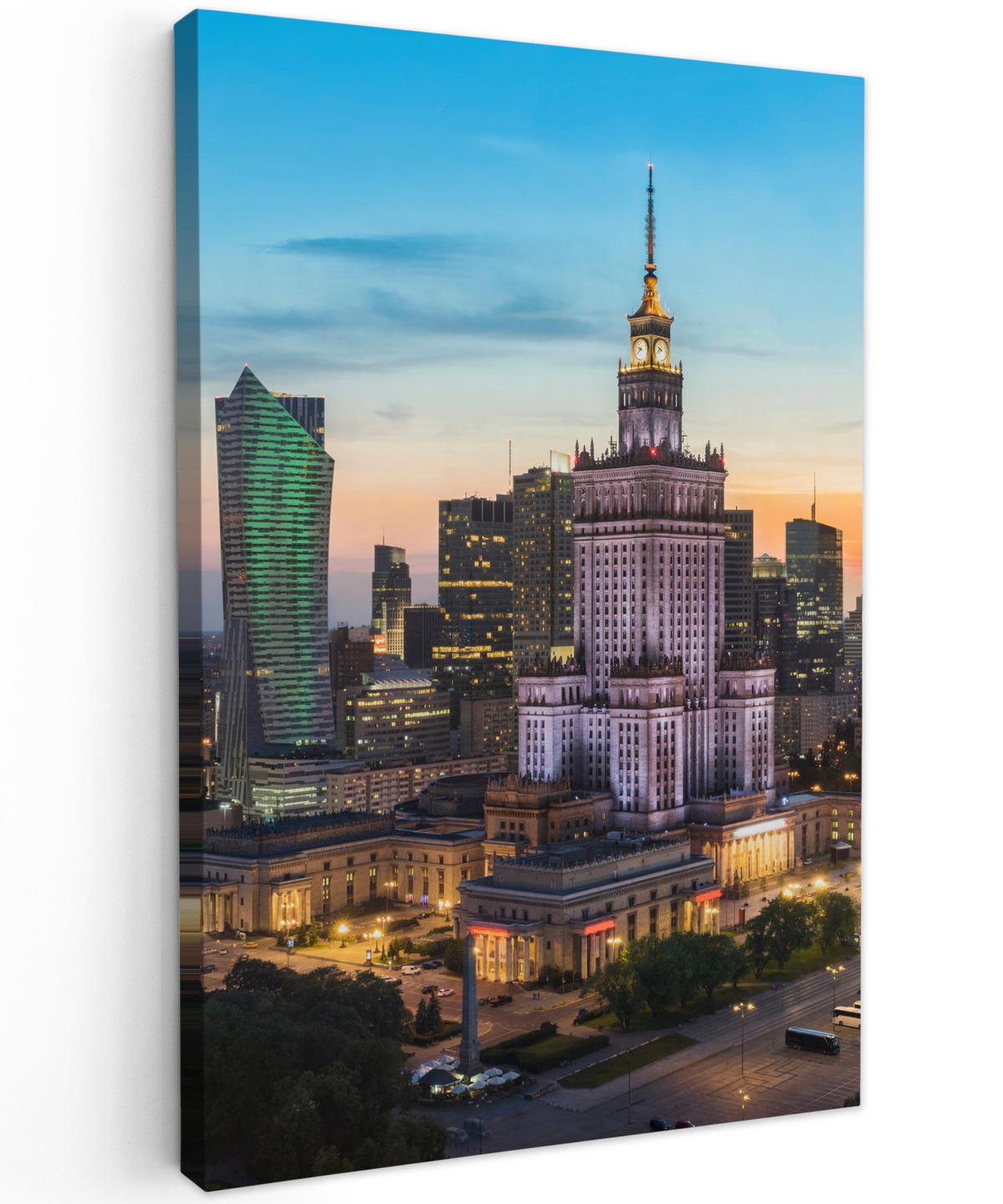Západ slunce nad panoramatem Varšavy.