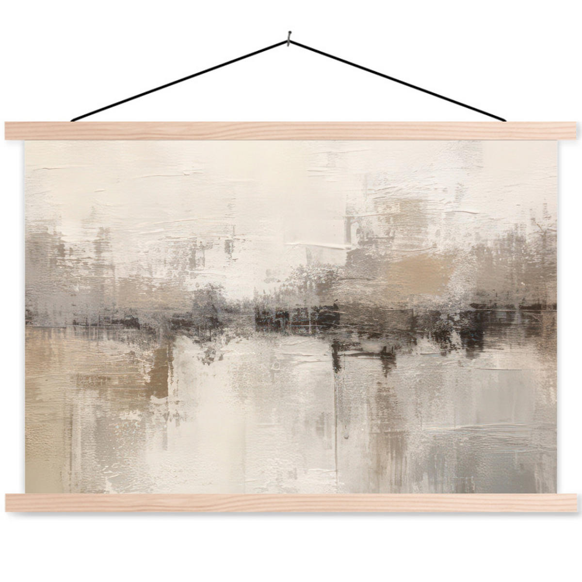Magnetické dřevěné lišty nahoře a dole tvoří stylový rám a umožňují snadné zavěšení pomocí integrované šňůrky. Ať už jako nástěnný obraz ve skandinávském stylu, minimalistický látkový plakát nebo dekorativní textilní obraz – tento plakát se dokonale hodí do každého interiéru.