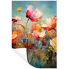 O obrázku: Barevná olejomalba s mnoha květinami.