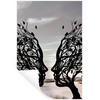O obrázku: Moderní a surrealistické umělecké dílo dvou stromů tvořících tváře, jejichž větve se ve větru ztrácejí.