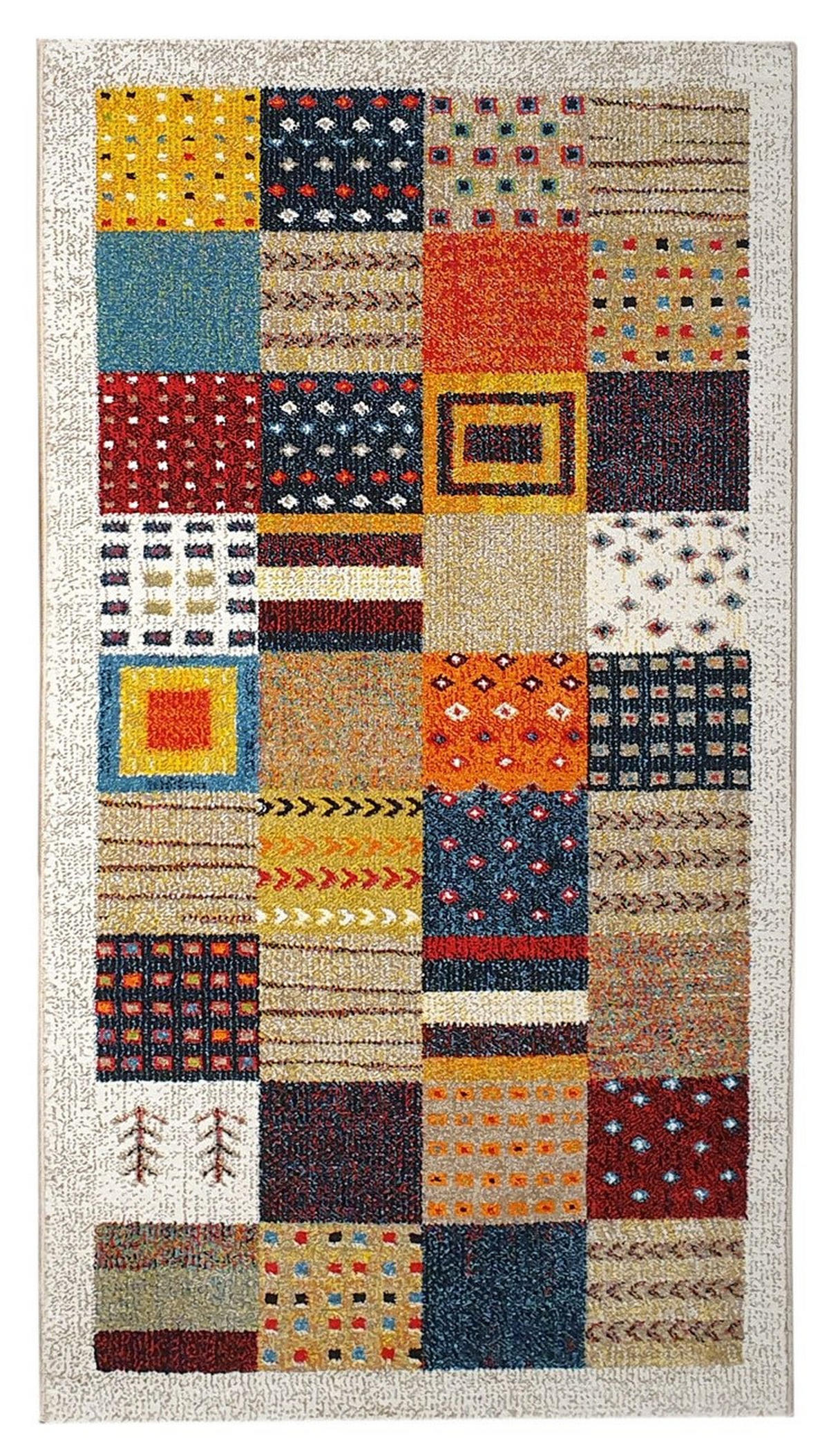 Tento tkaný koberec od NOVEL přinese do Vašeho domova veselé barvy. Malé čtverce v různých barvách a s nejrůznějšími vzory zdobí tento bytový doplněk. Čtverce obklopuje okraj v béžové barvě a vytváří tak vkusné lemování. Obdélníkový koberec o rozměrech cca 80 x 150 cm je zhotoven ze syntetických vláken a s výškou vlasu cca 9 mm bude obzvláště příjemný pro Vaše nohy. Velmi kreativní bytový doplněk!