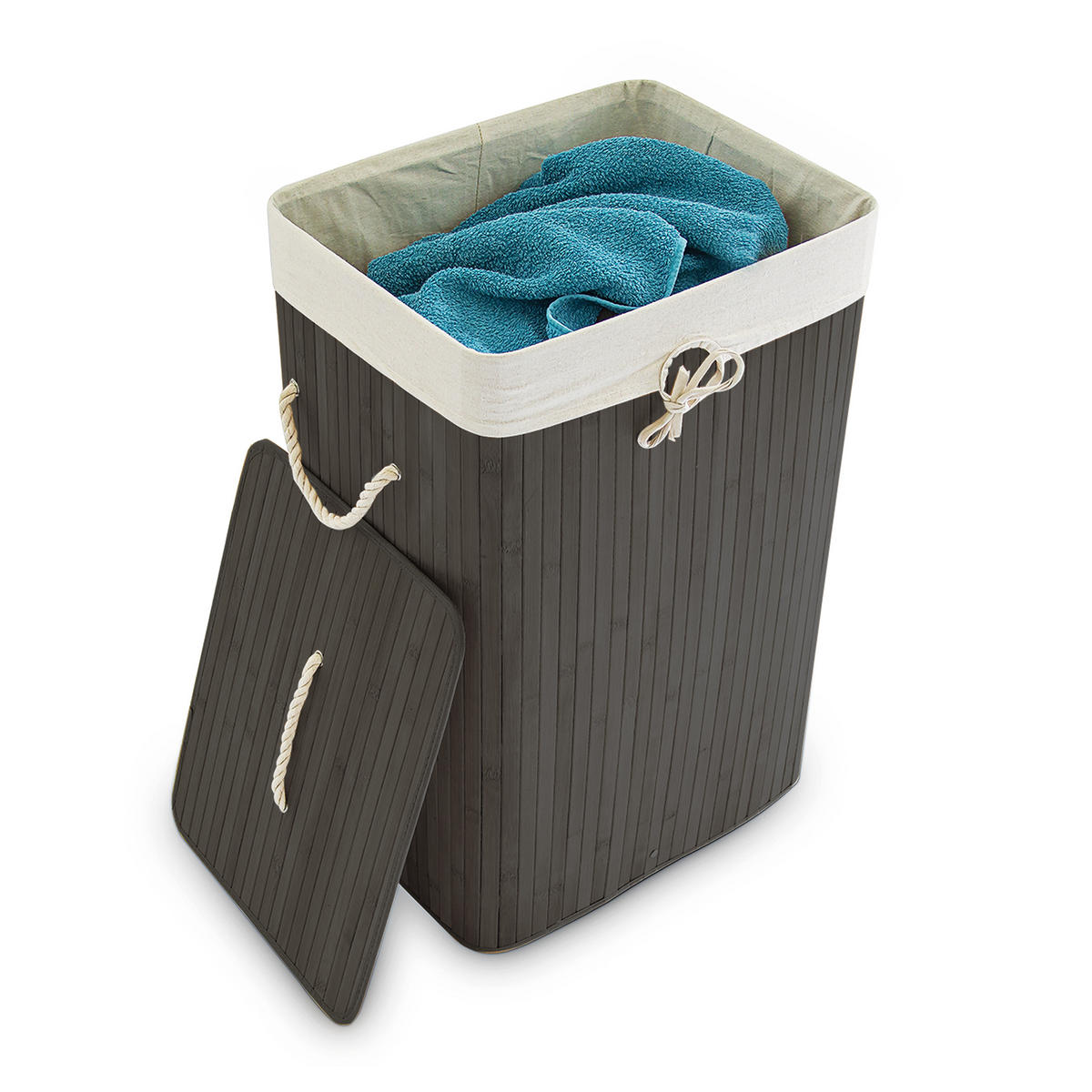 KOŠ na prádlo - černá, dřevo/textil (43.5/65.5/33.5cm) - RelaxdaysRelaxdays