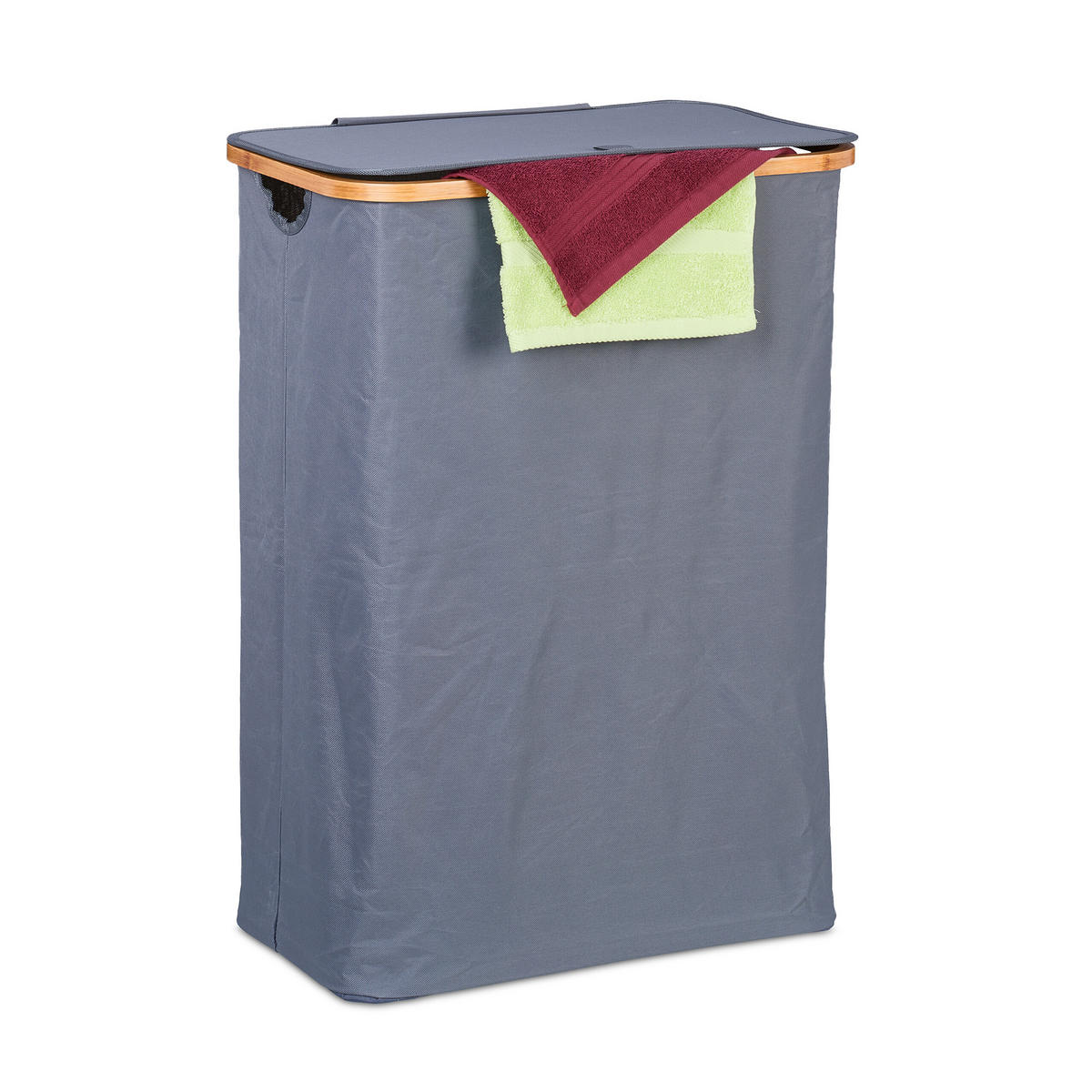 S tímto moderním košem na prádlo můžete do svého domova přinést praktický a dekorativní doplněk. Komoda na prádlo nabízí dostatek prostoru pro vaše špinavé prádlo. Lze ji snadno schovat pomocí víka a pohodlně přenášet pomocí úchytů. V případě potřeby lze flexibilní prádelní box snadno složit a uložit. Kombinace materiálů šedé látky a přírodních bambusových prvků dělá z koše na prádlo poutavý doplněk ložnice nebo koupelny.