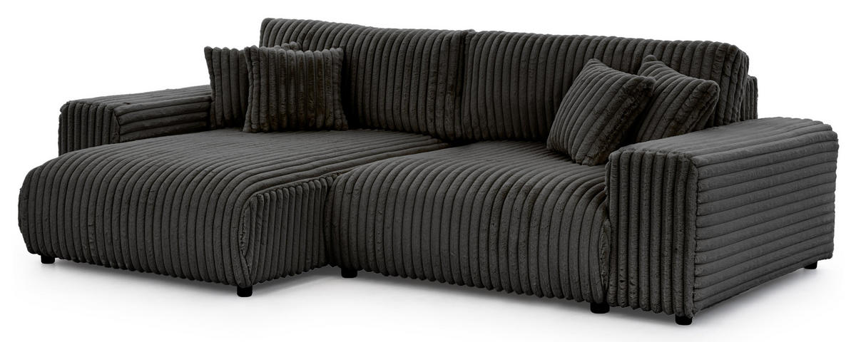 ROHOVÁ SEDAČKA Mollis s funkcí spaní a úložným prostorem v tmavě šedé barvě z plyšového manšestru - černá/tmavě šedá, dřevo/textil (255/168cm) - S-Style MöbelS-Style Möbel