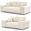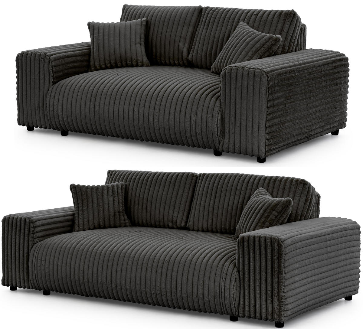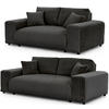 Obě pohovky, třímístná i dvoumístná, jsou potaženy luxusní látkou z plyšového manšestru, která je známá svou měkkostí a příjemnou strukturou a poskytuje výjimečný komfort. Jsou vyrobeny z vysoce kvalitních materiálů a vybaveny odolnými vlnitými pružinami, což zajišťuje vynikající stabilitu, dlouhou životnost a optimální pohodlí při sezení.