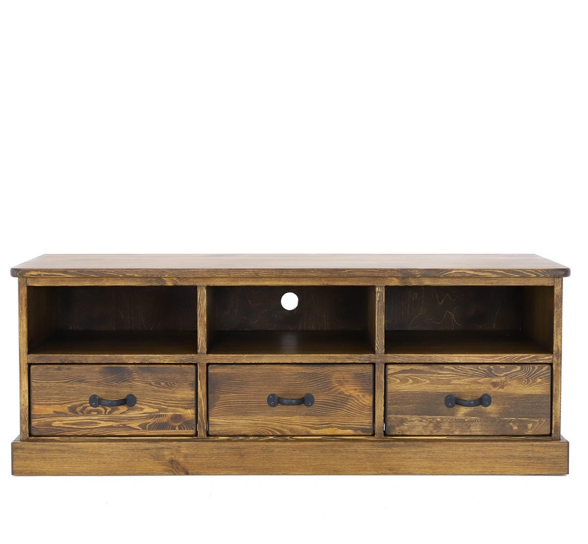 Základem dřevěné truhly je masivní podstavec, který slouží zároveň jako její dekorace. Boky nábytku byly ozdobeny úchytkami v retro stylu, které se mohou hodit, pokud je třeba nábytek přemístit. Víko je upevněno na spolehlivých kovaných závěsech vázacího typu. Vnitřek komody ukrývá úložný prostor. Nábytek je vyroben z masivního borovicového dřeva, což se promítá do jedinečného vzhledu, který díky charakteru dřeva zaručuje, že žádné dva kusy nejsou stejné. Ekologická hnědá vosková úprava dodává nábytku ušlechtilý vzhled a povrch má pěknou saténovou úpravu.
