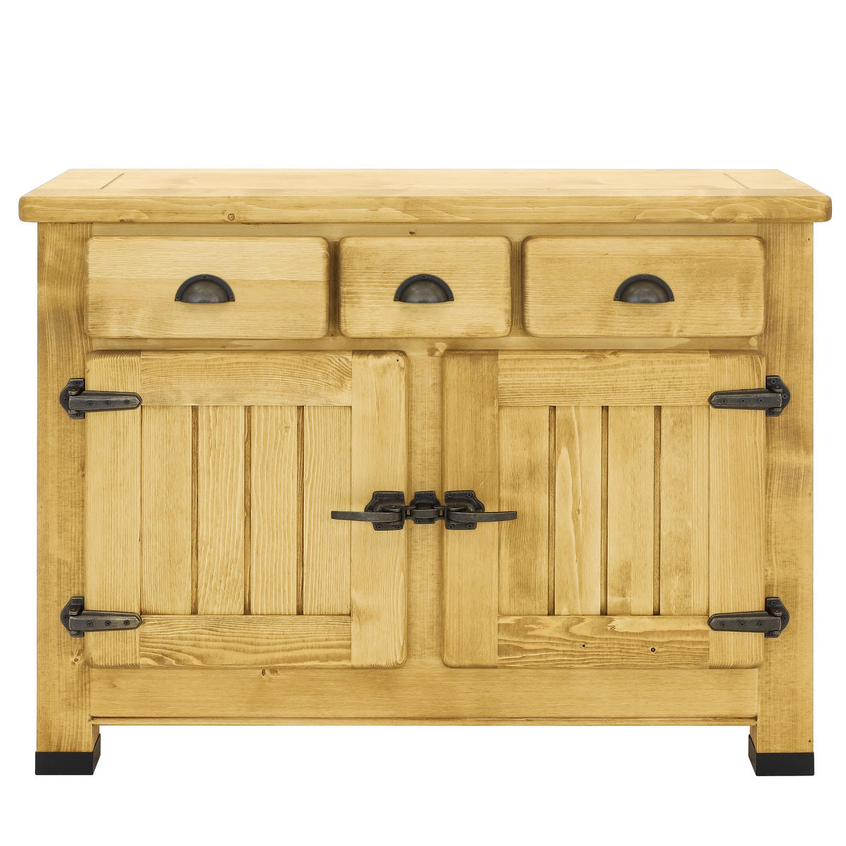 Obdivujete staré časy a líbí se vám dobové věci? Pak si jistě zamilujete i další ručně vyráběný kousek z naší dílny. Smrková komoda se třemi zásuvkami a dvěma uzavřenými skříňkami se bude hodit jak do obývacího pokoje, tak do ložnice k nohám postele. Krásně ukončí vaše místo na spaní. A vy budete mít své věci ihned po ruce. Dostatek prostoru, variabilní použití, rustikální vzhled. To jsou klady tohoto nábytku.