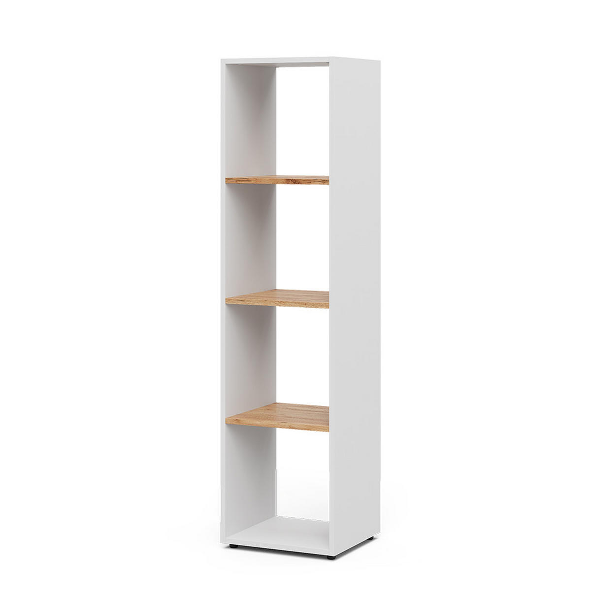 Stojatá knihovna nabízí prostor pro 30x30 krabic. Díky 4 otevřeným policím vytváří dostatek úložného prostoru pro knihy a mnoho dalšího.