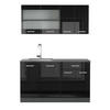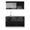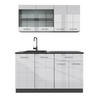 ROZMĚRY: Blok kuchyně má celkovou velikost 140 cm, hloubka a výška spodních a horních modulů jsou zobrazeny na fotografiích. Spodní skříňky mají hloubku 46 cm.