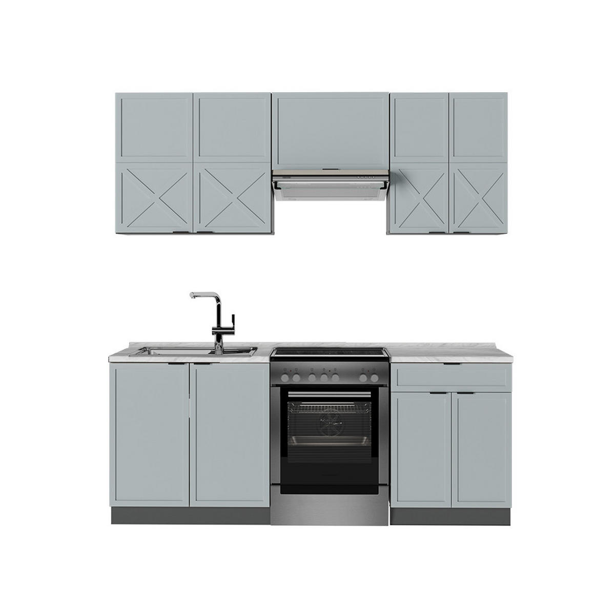 ROZSAH DODÁVKY: Kuchyňská linka s pracovní deskou, montážní materiál, návod k montáži (není-li uvedeno jinak, nejsou součástí dodávky elektrické spotřebiče a dekorace).