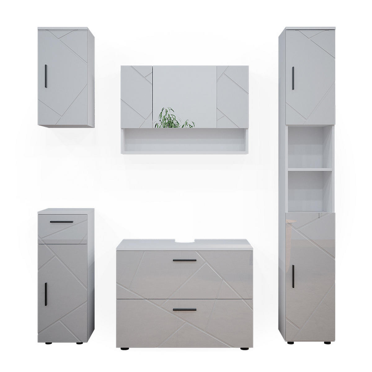ROZSAH DODÁVKY: Skříňka se zrcadlem do koupelny, Spodní skříňka pod umyvadlo, Šatní skříň Midi, Koupelnová skříňka, Koupelnová skříňka, Montážní návod, Montážní materiál