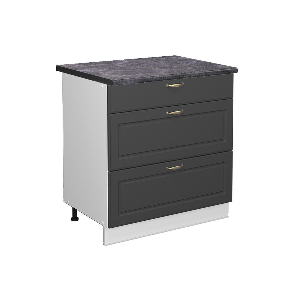 SPODNÍ SKŘÍŇKA KUCHYŇSKÉ LINKY Fame-Line Anthrazit-Gold Landhaus 80 cm se 3 zásuvkami, PD Antracit - bílá/antracitová, kompozitní dřevo (80/82/60cm) - ViccoVicco