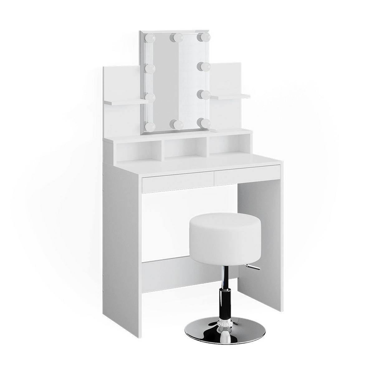 ROZSAH DODÁVKY: Toaletní stolek, LED světelný řetěz, Stolička, Montážní návod, Montážní materiál