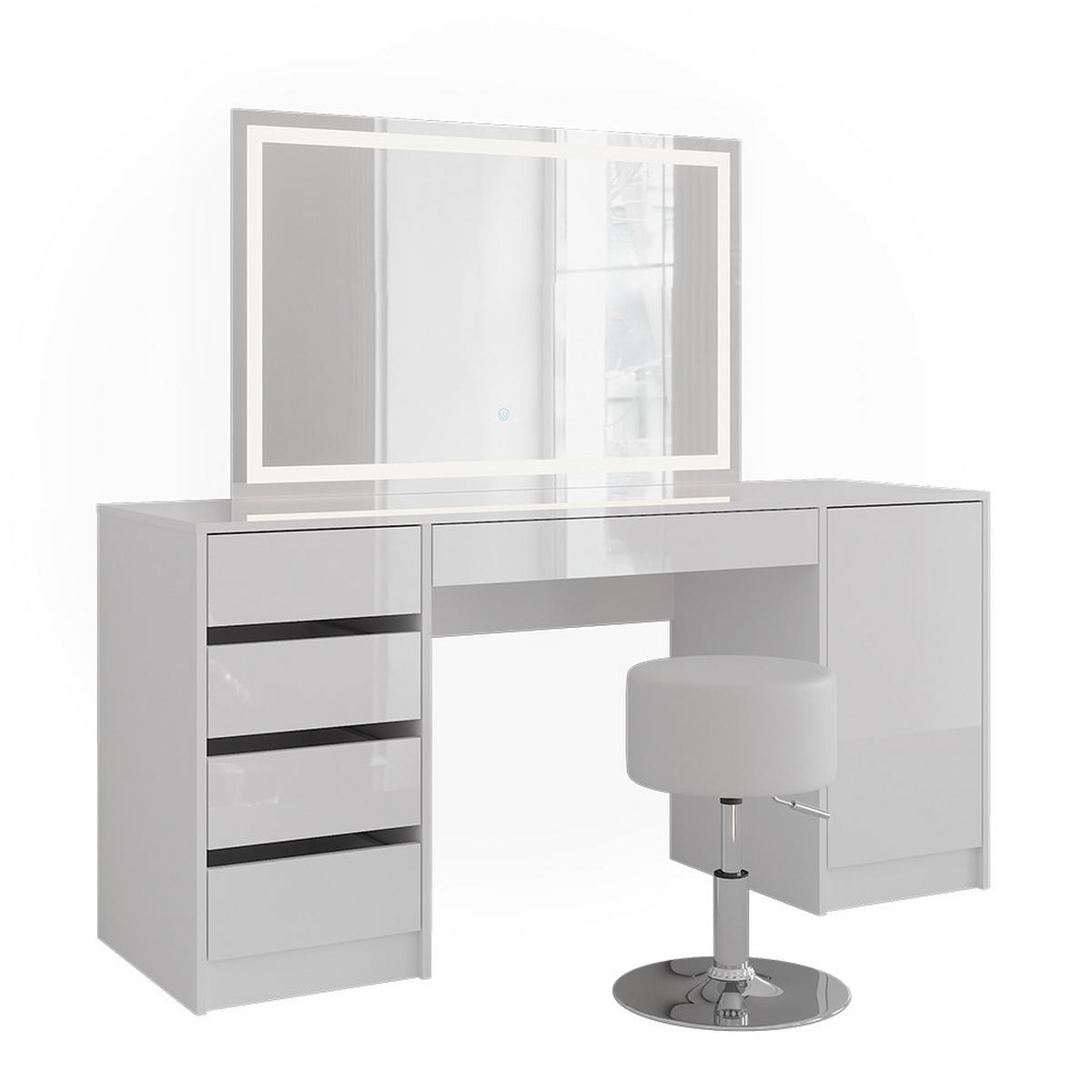 Toaletní stolek se zrcadlem nabízí elegantní toaletní stolek s osvětlením a zásuvkami a stylový stolek pro každodenní líčení. Nezbytná výbava pro každou milovnici krásy!