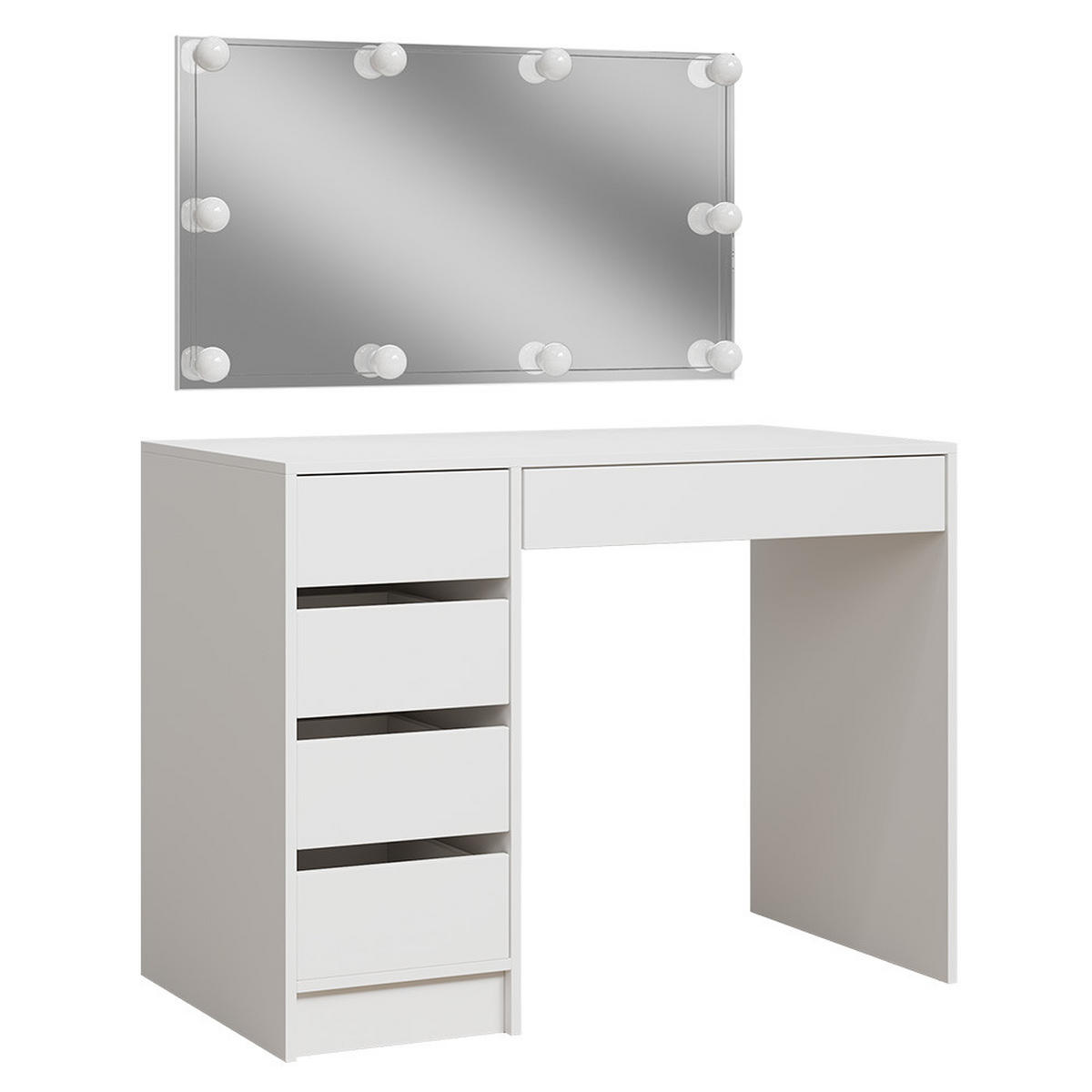 Toaletní stolek s osvětlením nabízí 5 zásuvek v robustní konstrukci a velké obdélníkové zrcadlo.