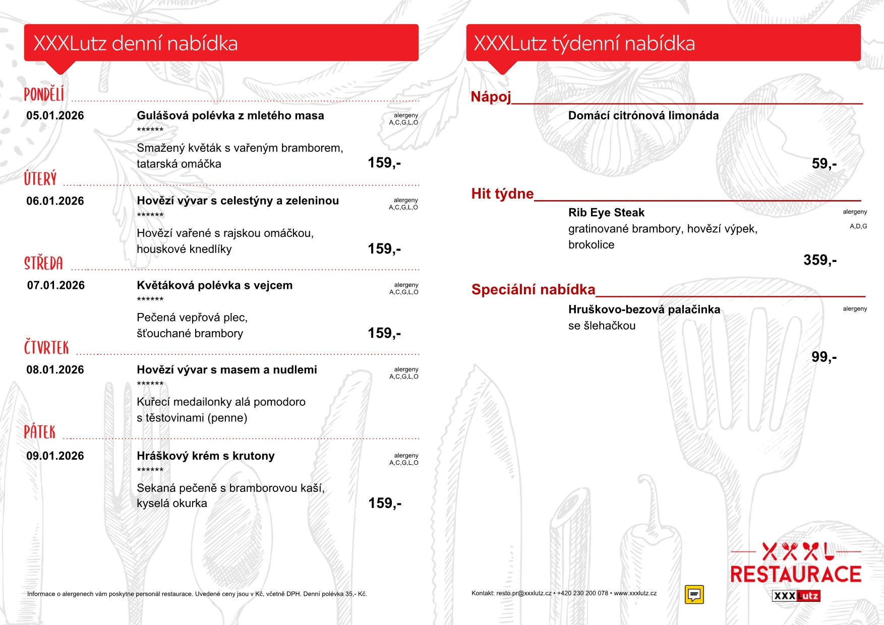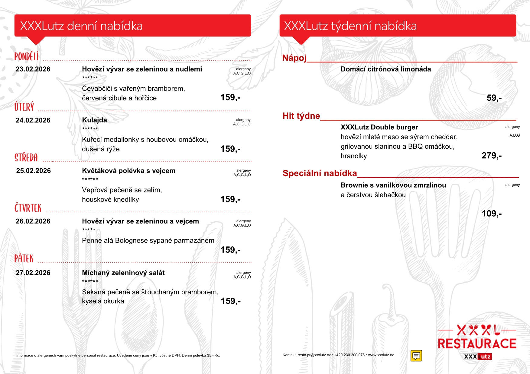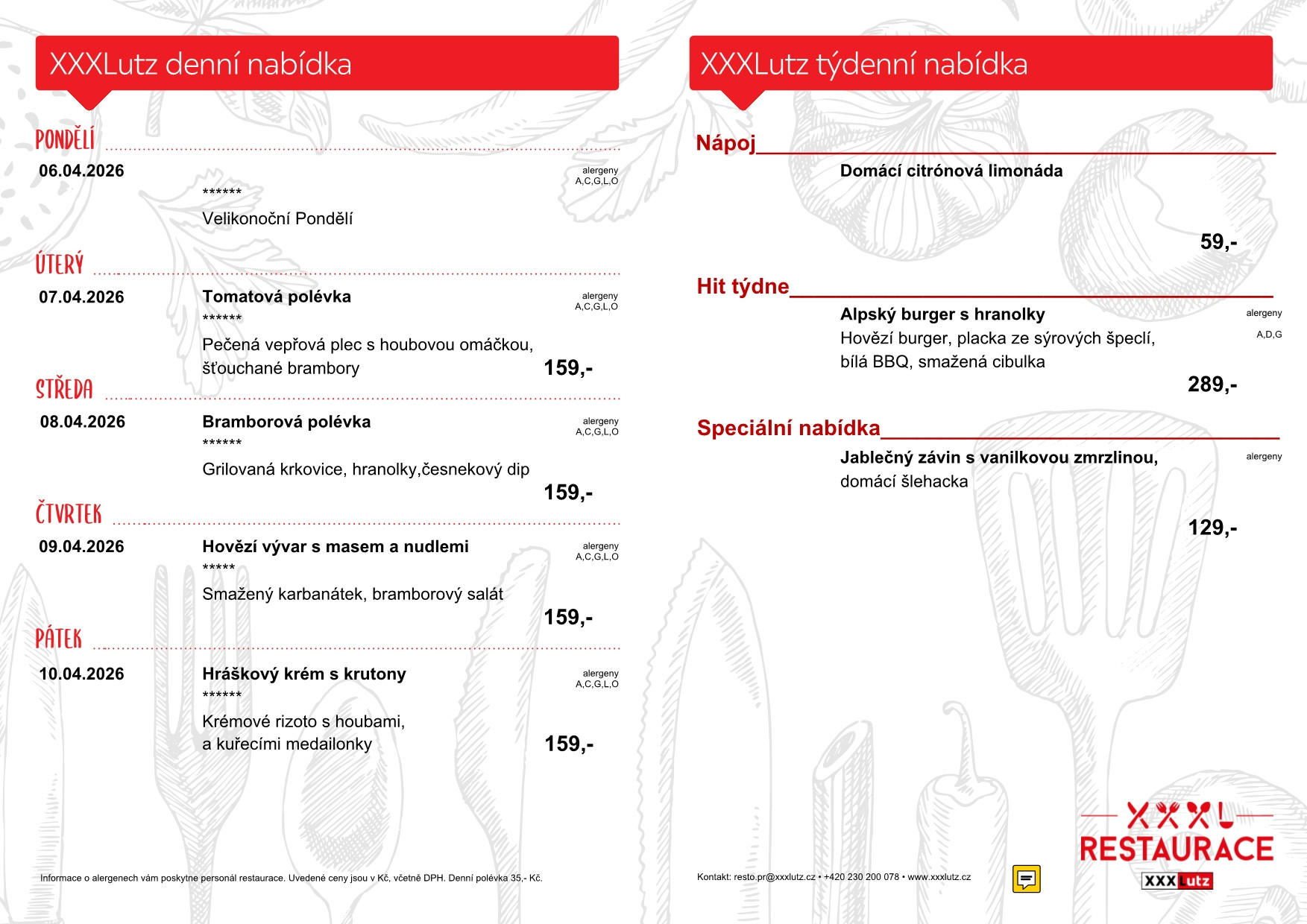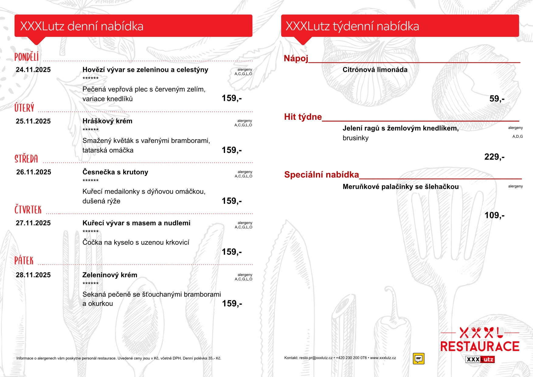 Menu restaurace XXXLutz Stodůlky